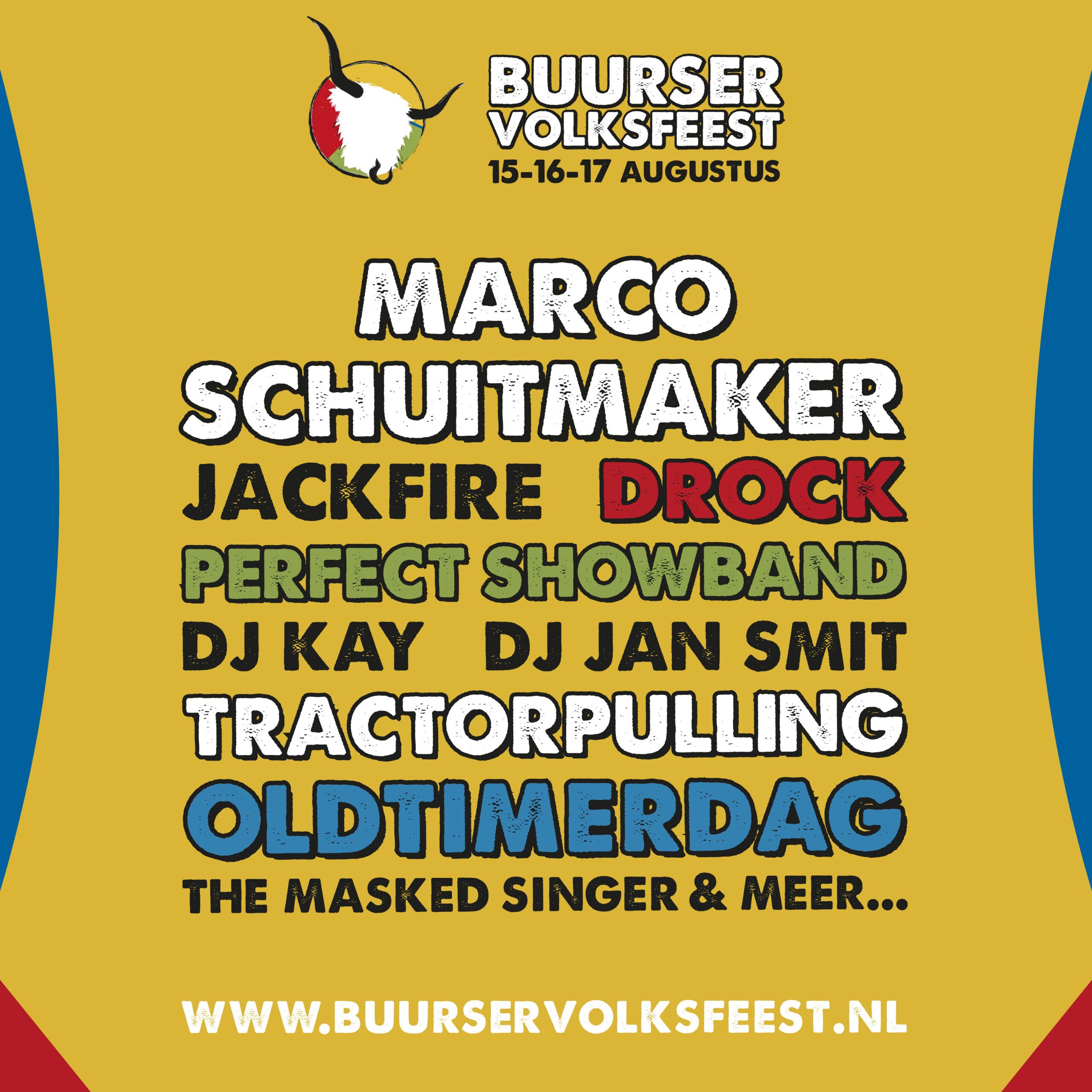 Op zaterdagavond gaan de handen opnieuw in de lucht met optredens van de band DrΓΆck (22.00 uur) en niemand minder dan volkszanger Marco Schuitmaker (23.30 uur), bekend van zijn meezinghit “Engelbewaarder”.