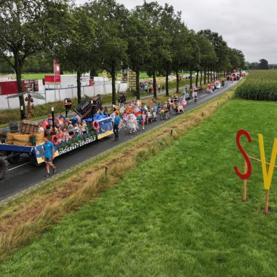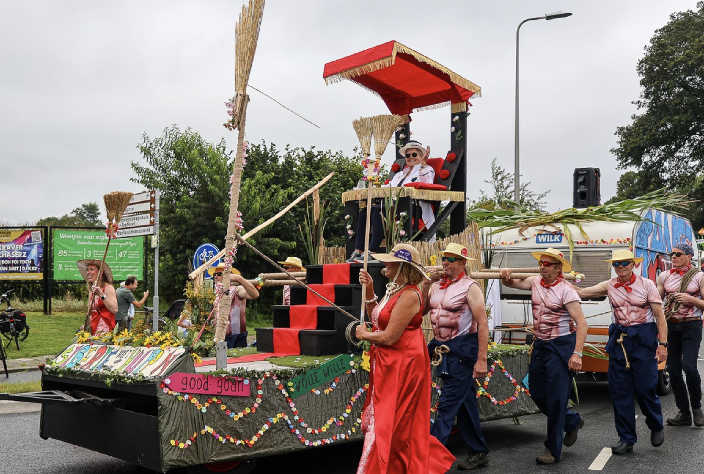 Zaterdagochtend starten we om 10.00 uur met de traditionele optocht, waar praalwagens en vrolijke groepen het dorp weer kleur geven.Β